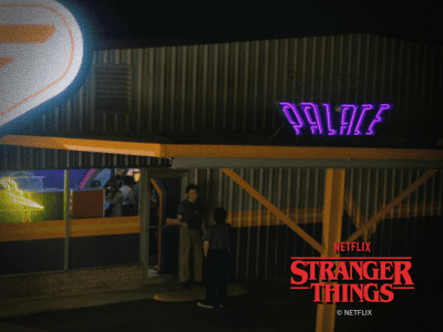 The Palace Arcade, another hangout for the boys, takes its name directly from the arcade in the movie <WarGames>. The premise of children becoming protagonists in a doomsday scenario and scrambling to solve a massive problem on their own, combined with the Cold War standoff between the US and the USSR, flows throughout the entirety of <Stranger Things>. You can even find a VHS copy of <WarGames> at the Family Video store.