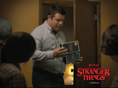 The movie Bob Newby chooses for the Byers family movie night is the family comedy <Mr. Mom> starring Michael Keaton. (<Twilight Zone: The Movie> and <WarGames> were outvoted!) Joyce and Bob laugh and get absorbed in the movie, but Jonathan and Will can't concentrate at all. After all, the brothers are currently fighting a supernatural monster.