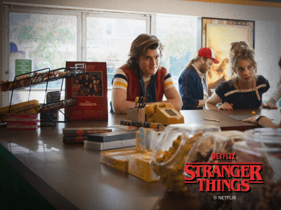 While Robin and Steve are having their Family Video job interview, the video sitting on the store table is the animated special <It's the Great Pumpkin, Charlie Brown>. If you had to pick the most lovable Halloween movie in the world, this would be my top recommendation.
