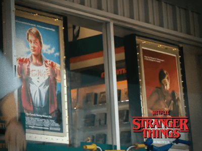 Do you see the poster with Eric Roberts's face outside the Family Video store? This film is <The Coca-Cola Kid>, uniquely featuring a Coca-Cola marketer as the protagonist. An interesting satire connected to the 'New Coke' marketing fiasco of the time. 1985 was the year Coca-Cola's "New Coke" disaster went down.
